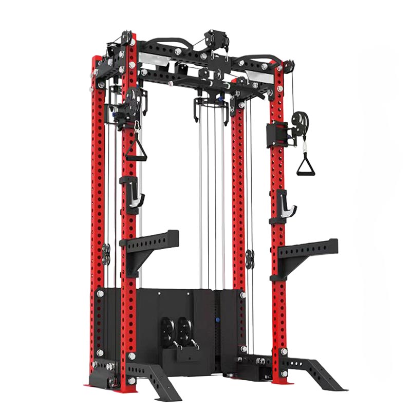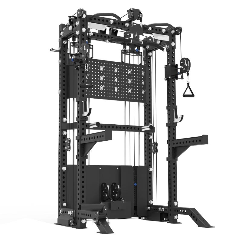 एकीकृत अनुलग्नक: फ्रेम एक समायोज्य-ऊंचाई पुल-अप स्टेशन (मल्टी-ग्रिप), पैर प्रशिक्षण हुक, को एकीकृत करता है।