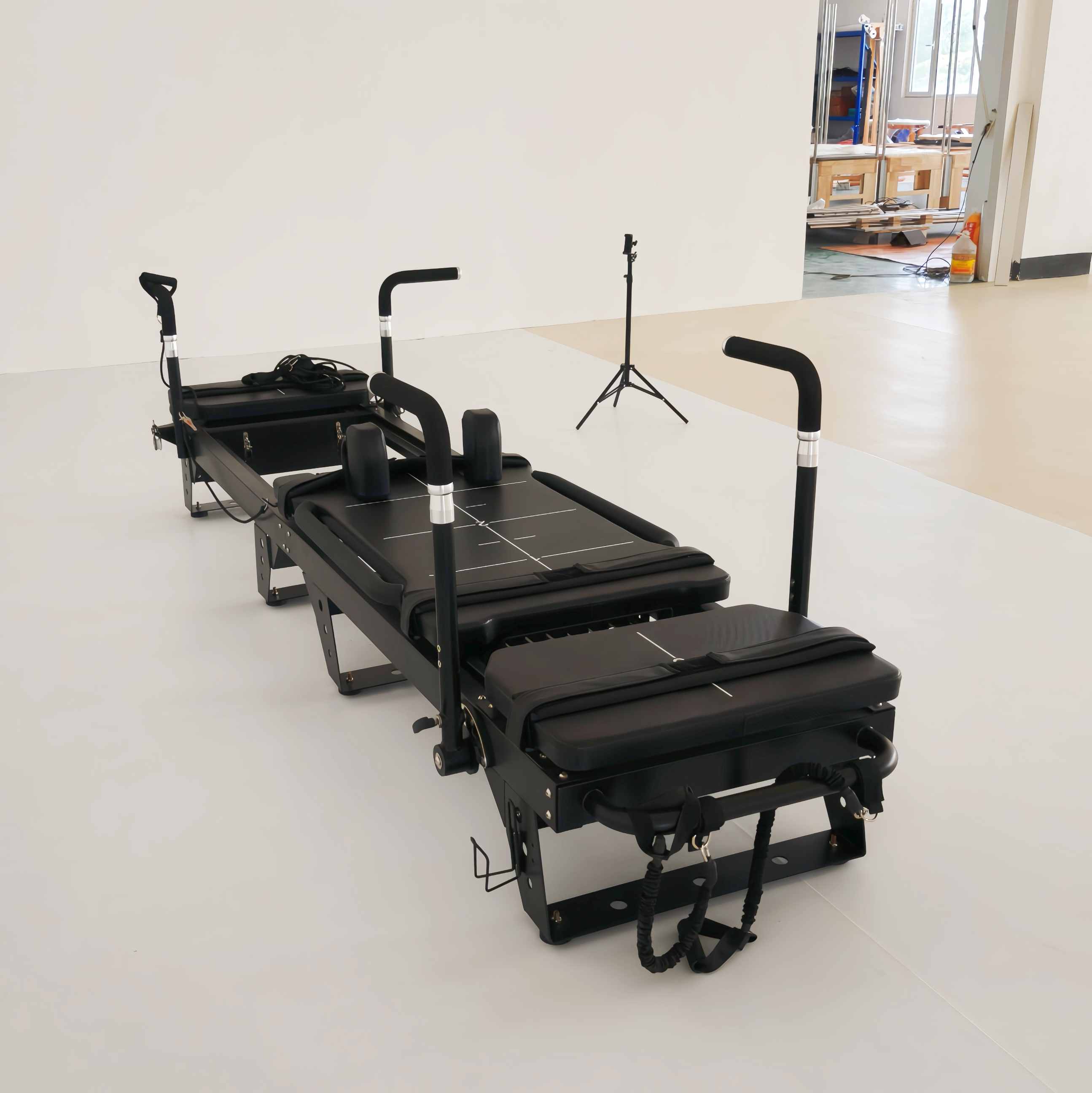 अनुकूलित आयामों और ठोस निर्माण के साथ, पिलेट्स रिफॉर्मर मशीन आधुनिक व्यावसायिक स्थानों में पूरी तरह फिट बैठती है। 3230*885*980 सेमी मापने वाला, यह अधिकांश स्टूडियो लेआउट के लिए उपयुक्त है। 163 किलोग्राम (359.4 पाउंड) पर, इसका पर्याप्त वजन दीर्घकालिक, उच्च आवृत्ति वाले व्यावसायिक उपयोग के लिए असाधारण संरचनात्मक अखंडता सुनिश्चित करता है।